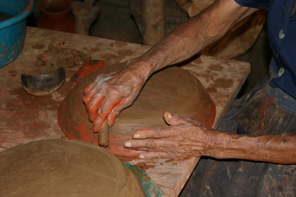 femmes : un atelier de poterie et un four, à l’abri d’un grand
